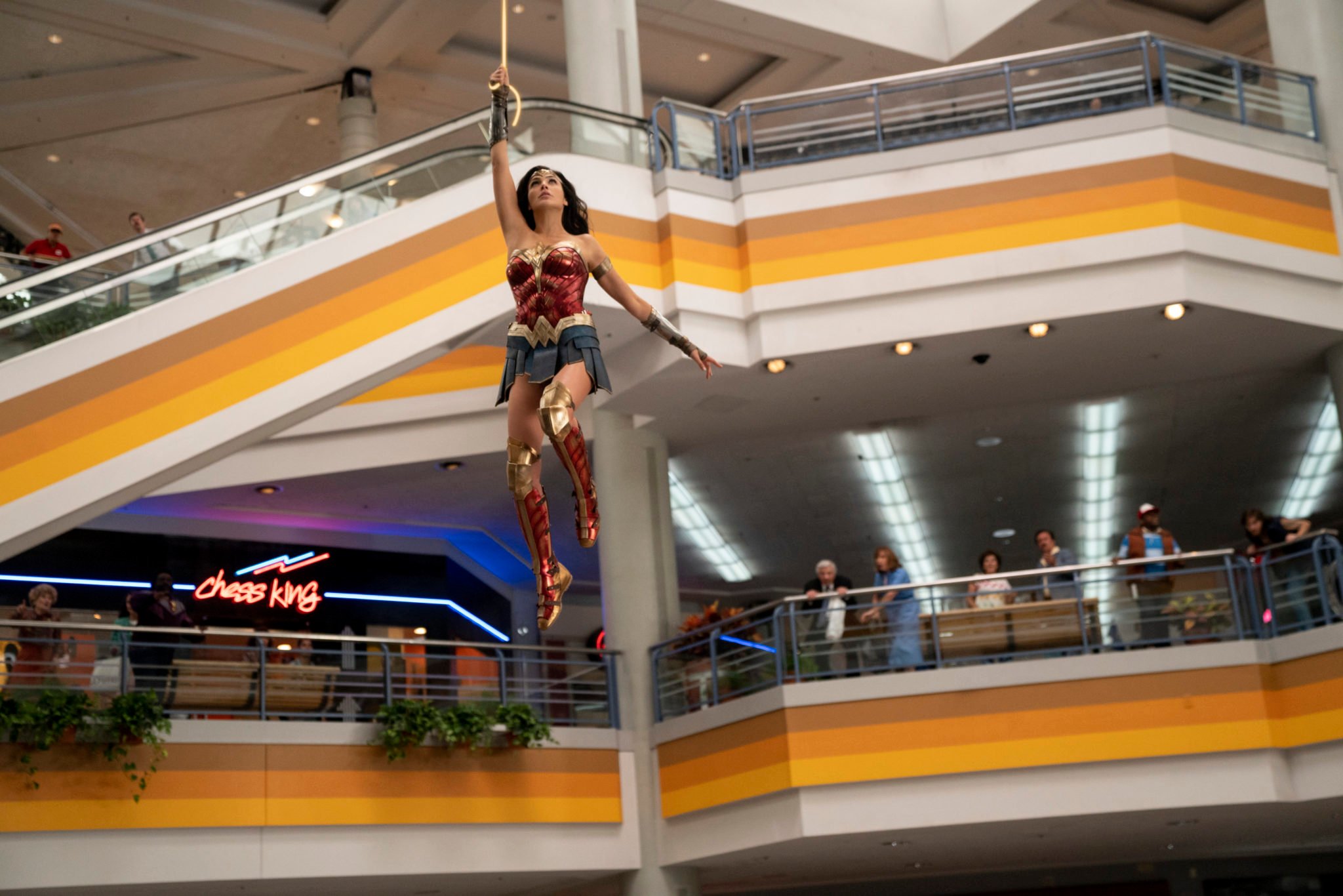 I consider the ’80s to be the golden time of my youth. I am a massive fan of all-things-’80s — to the extreme — as my daughter could painfully tell you. This being the case, I was quite intrigued to hear that the derelict mall was being made up as a set for a portion of the in-development movie Wonder Woman 1984 (which, as a film I must say, is not exactly my cup of tea). To facilitate this, all three floors of the central core of the mall were made into a visage of what the fully-enclosed mall may have looked like in the mid-’80s, had it then existed as such (as opposed to the outdoor center designed in the ’60s that it was). I was anxious to see the result, and a few months ago a teaser trailer for the movie was released that showed just that (and the movie has since been released). It is pretty glorious, in that glowing, neon ’80s way.